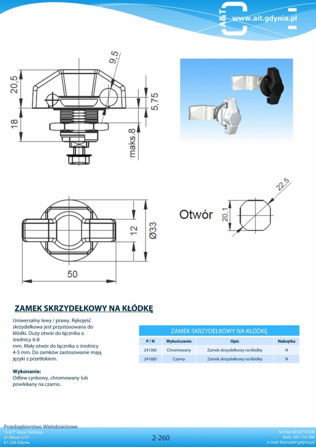 | 241385 | Chromowany | Zamek skrzydełkowy na kłódkę | N |