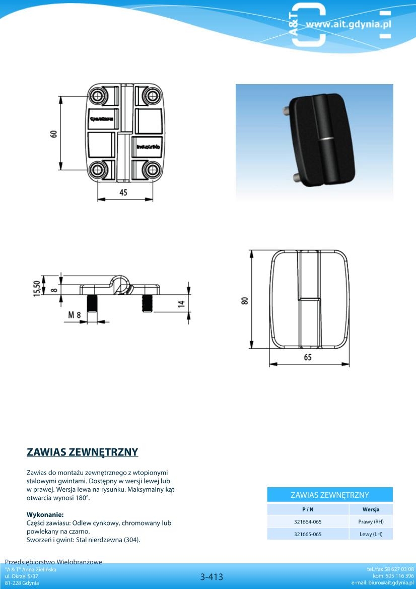 Części zawiasu: Odlew cynkowy, chromowany lub
